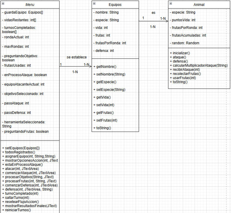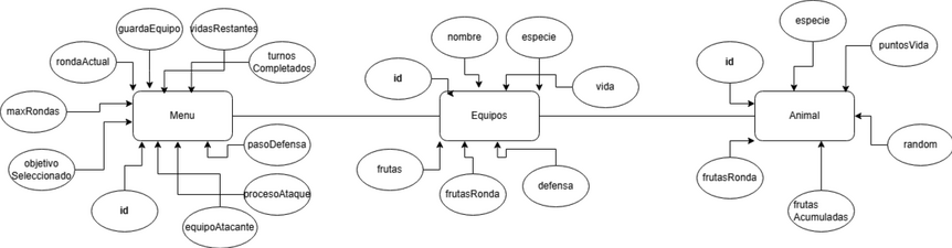 | Estructura de un sistema orientado a objetos, representando clases, atributos, métodos y relaciones. En este caso solo tenemos 3 clases: |